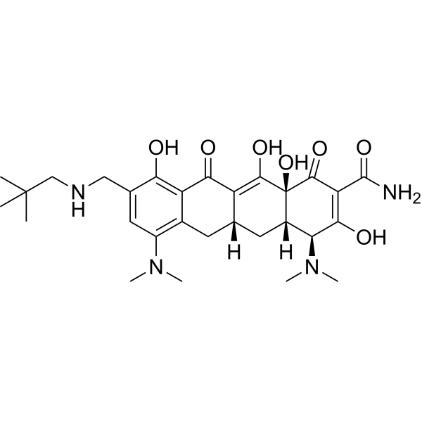 Omadacycline (PTK 0796), a first-in-class orally active aminomethylcycline antibacterial, is a member of the tetracycline class of antibiotics. Omadacycline acts through the inhibition of bacterial protein synthesis by binding to the 30S ribosomal subunit. Omadacycline possesses broad-spectrum antibacterial activity against aerobic and anaerobic Gram-positive and Gram-negative bacteria, as well as atypical bacteria. Omadacycline can be used for the research of acute bacterial skin and skin-structure infections, community-acquired pneumonia, and urinary tract infections
